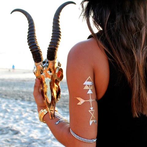 Flash Tattoos são tatuagens temporárias metálicas, douradas ou prateadas, que são aplicadas apenas com água e que podem durar até algumas semanas. São perfeitas para aquelas pessoas que querem tatuagens mas ainda estão um pouco incertos do que fazer.